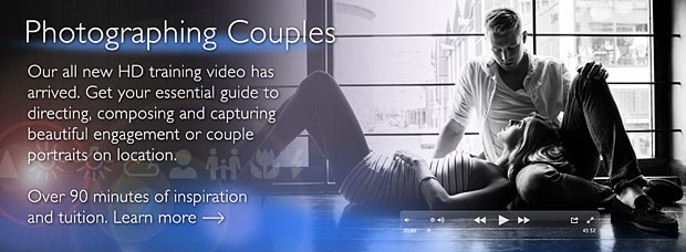 Here are a selection of the pictures taken during the making of the Photographing Couples video. I photographed two couples, one in an urban environment and the other in parkland to create a body of work that shows exactly how I pose, light and shoot my couples pictures. Over 600,000 visits to the posing couples pages on this blog triggered the project that is now finally complete. The pictures I shot are displayed in colour throughout the video with their exposure exif data showing all the information you need to recreate the looks. I also share my Speedlight settings too.