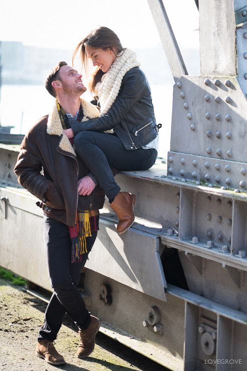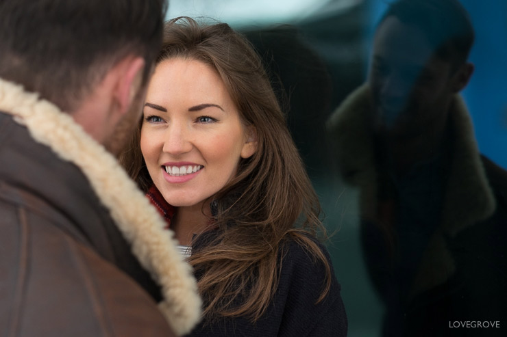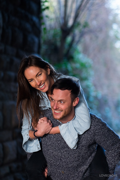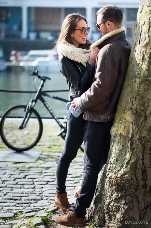 Shooting with the small and light X-T1 with the 56mm lens is so easy. I don’t even need to have a camera bag. This helps avoid being spotted as a professional and I’d expect never to get moved on. You don’t need lots of expensive gear to take great engagement pictures, just a good eye, an ability to build rapport, and some directing skills. This was the first time I’d met Jolie and Jake and after a swift Cappuccino we were having fun from shot one.